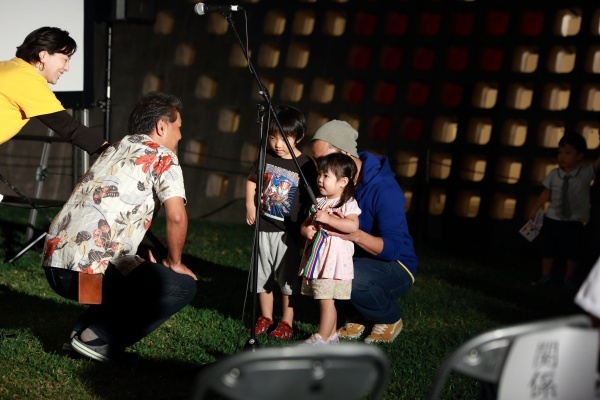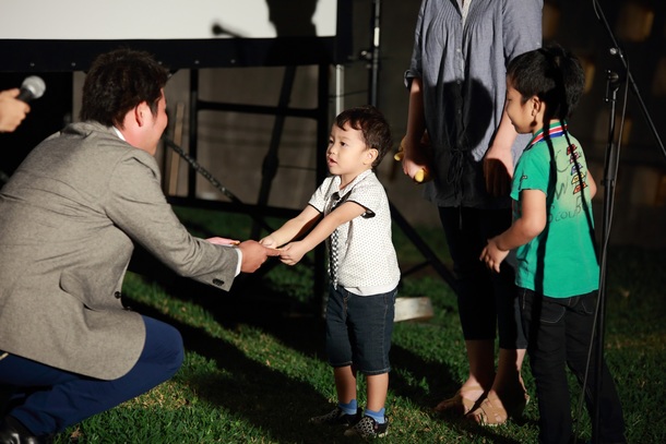 ノミネートされた10作品はほのぼのとする作品ばかりで、大きな画面を一緒にみる感覚は、観客が家族になったような錯覚さえ覚えました。小さな受賞者の様子。上位3作は沖縄ファミリーマートさんのサイトでもご覧いただけます。