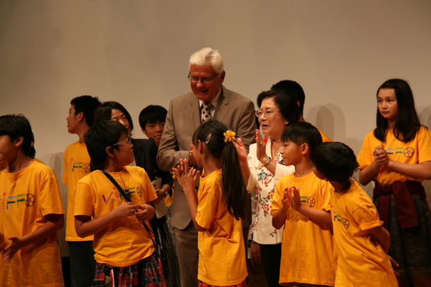 会場で来賓の皆さんとともに、こどもスタッフが一同に集まり、開会宣言が行われました!