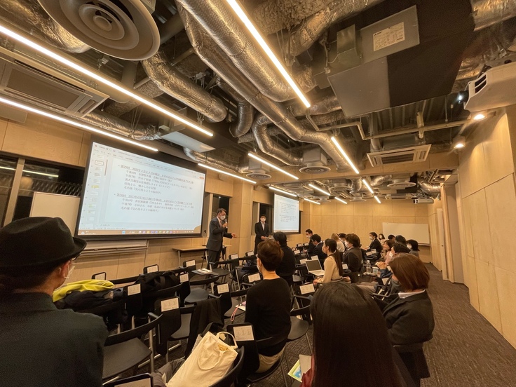 大学院修士課程の学生の研究を踏まえ、経営者の暴走防止等について企業人らと協議しています。