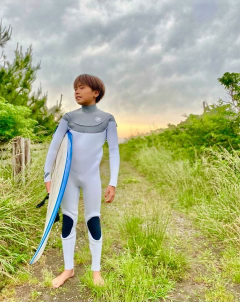 サーフィンは、自分にとってかけがいのないスポーツで遊びでもあります。そして、将来もサーフィ ンを通して自分にしかできないスタイルを沢山だしていきたいです。!