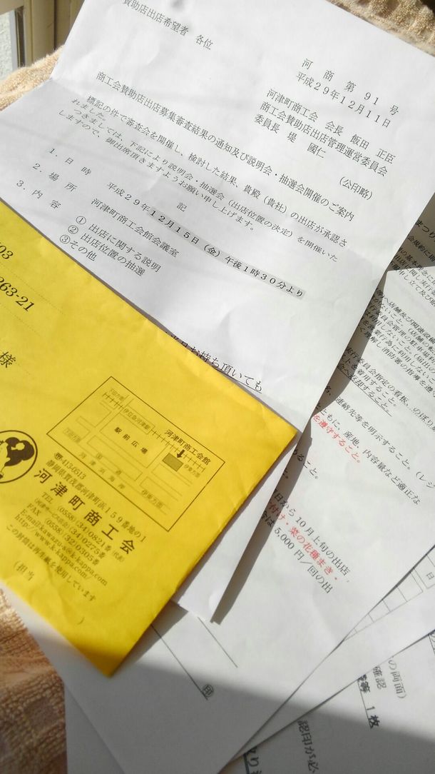 11/30をもって締め切られた、河津桜まつり出店者募集(河津町商工会割当分)でございますが、無事に審査を通過して出店OKとなりました。