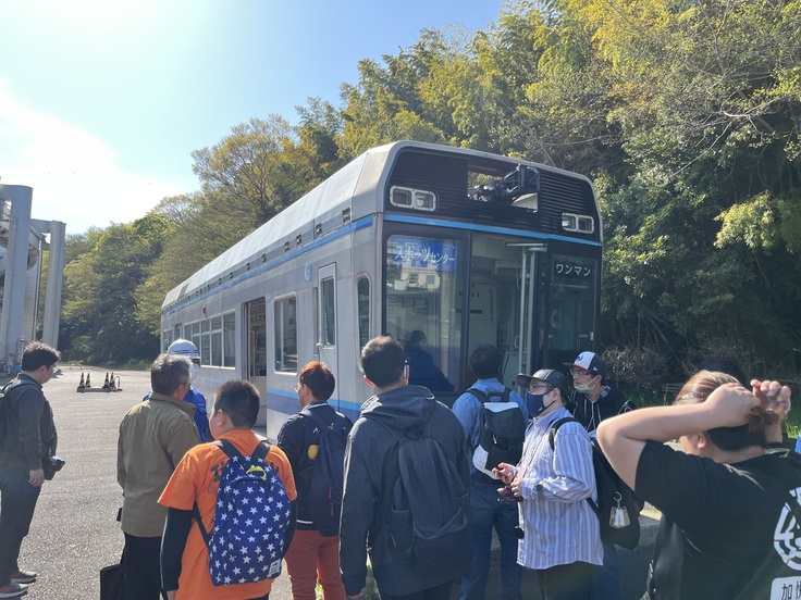 社員様のご説明を交えながら、まだまだデビューまもない22000形の車内見学や体験、そして竹本社長もお見えになりご挨拶もいただきました!