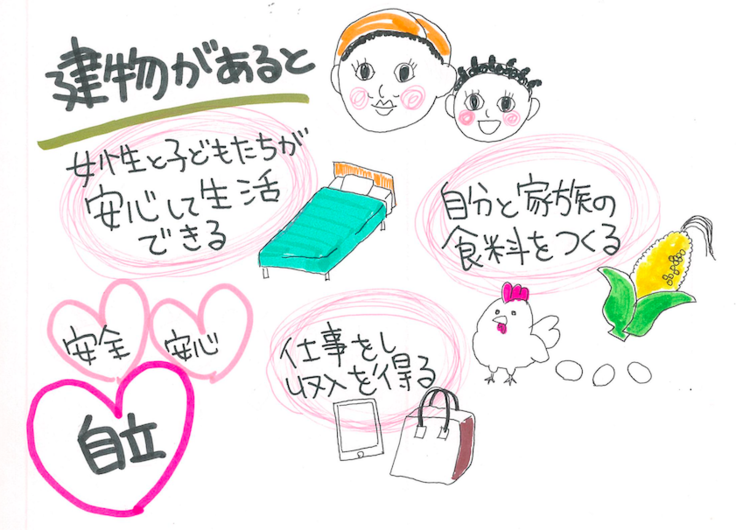 今から私たちが作る施設は、女性たちが安心して寝泊り出来る生活施設となります。 また、彼女たちが仕事を身につけ、収入を得るための場としても機能するのです。