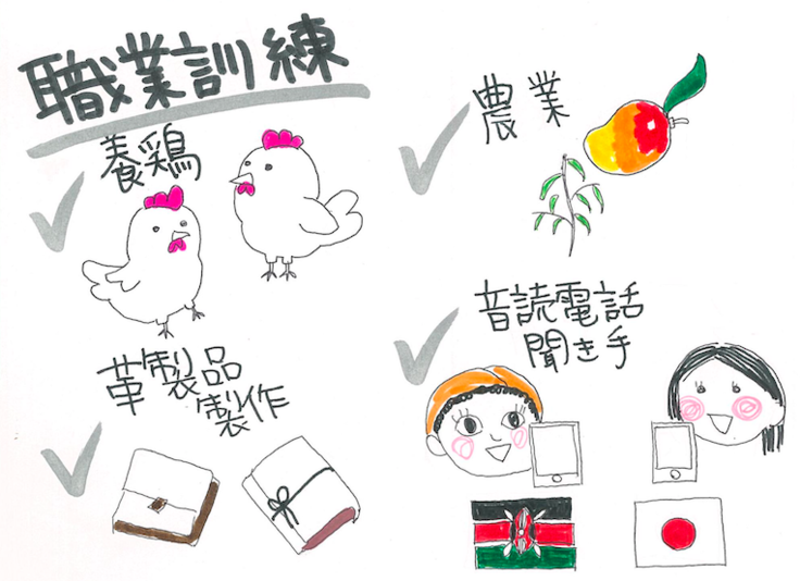 この施設では、養鶏、農業、革製品の製作などを学ぶことができるようになります。英語学習の聞き手を務めるための研修も実施します。