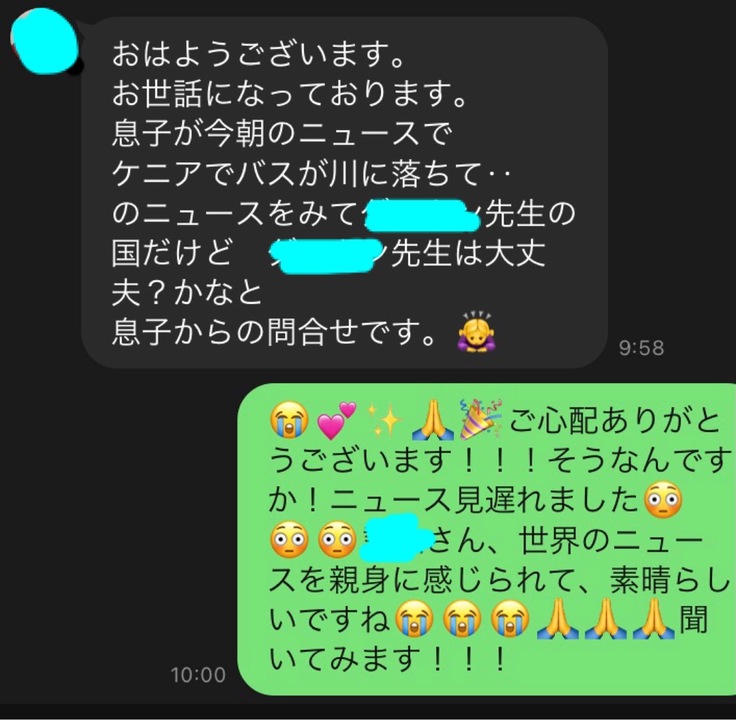 ケニアと繋がる音読学習を始めて3日目の小学生さんが ケニアでバスの事故のニュースを見られ、お母さまからこんなメッセージを頂きました。