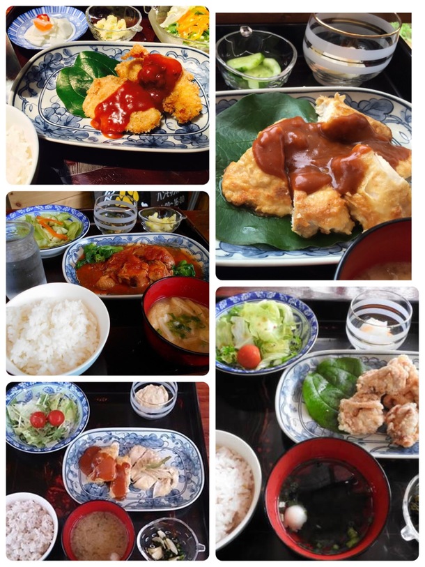 料理は、ヘルシーなチキンを使った家庭料理、塩唐揚げ、チキン南蛮、チキンソテー、チキンのトマトソース煮などをメインに旬の素材を使った一品、野菜サラダ、汁物、ごはん、漬物です。