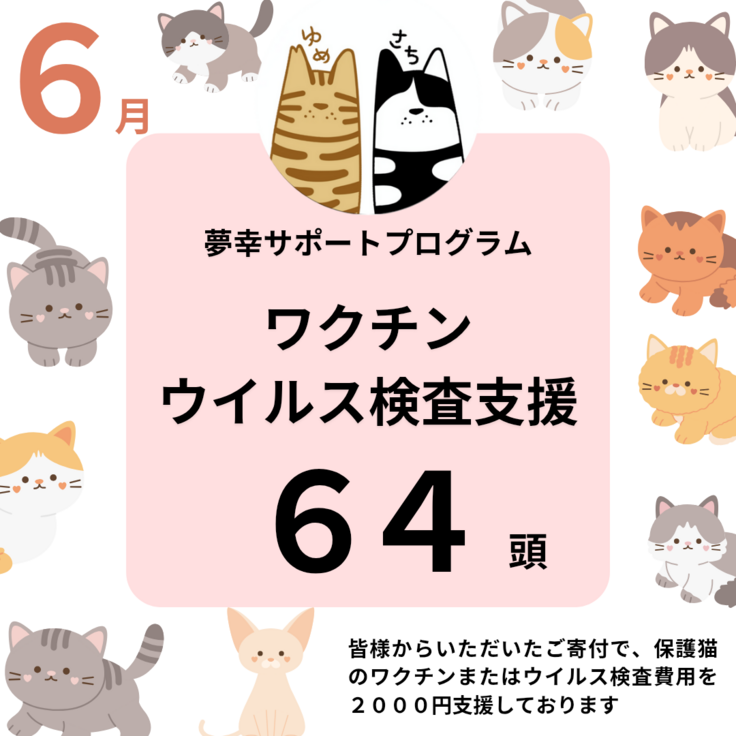6月も皆様のおかげで132頭の猫ちゃんに支援できました!