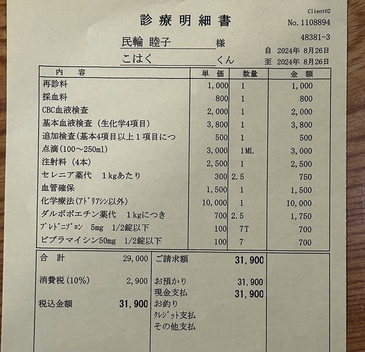 ご支援金は全て琥珀の治療費に大切に使用させていただきます。
