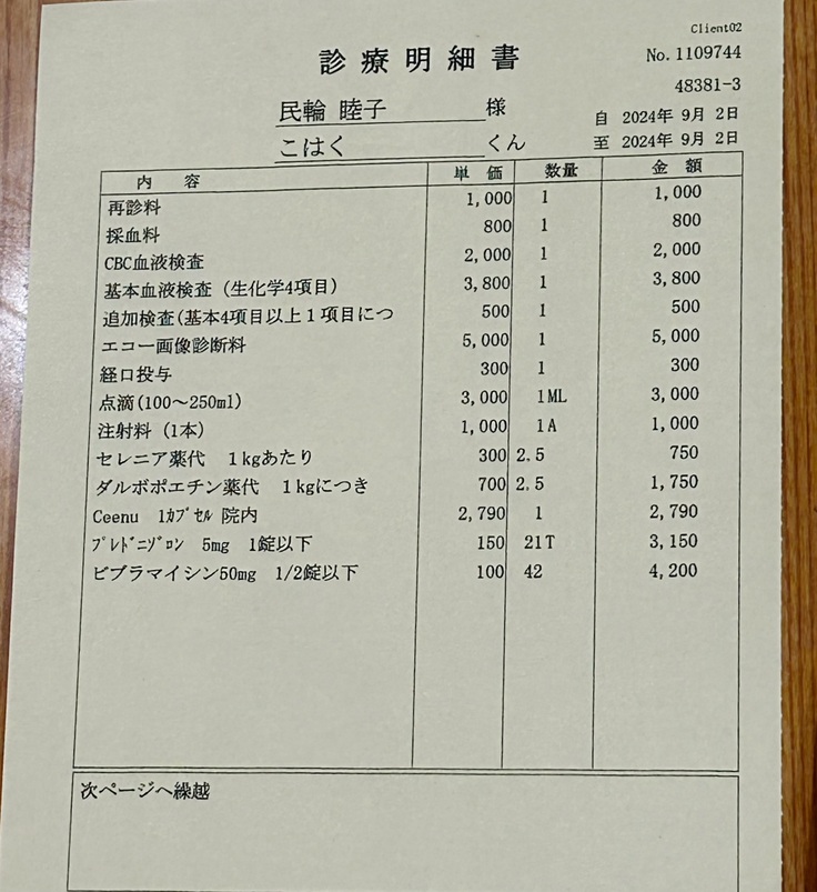 血液検査の結果、貧血は少し改善されているけど、腎臓の数値が上がっていて良くありませんでした😢