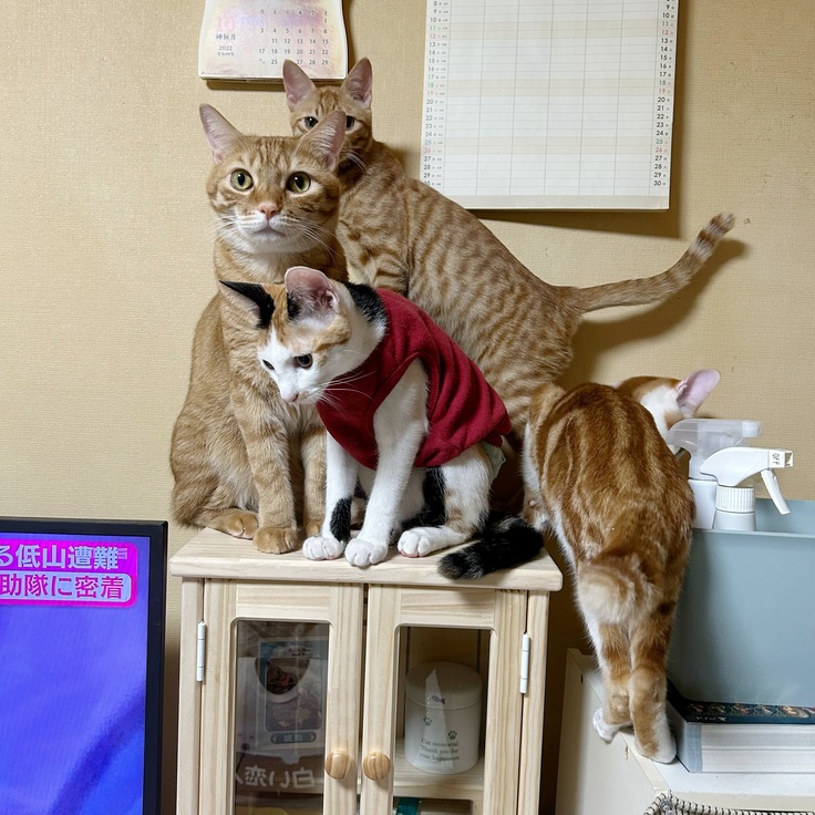 琥珀の傍にいたいのか、お仏壇の上はみんな順番で乗ってしまっています💦