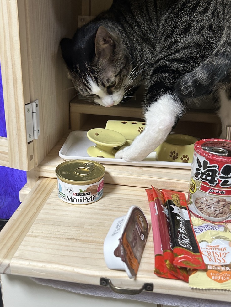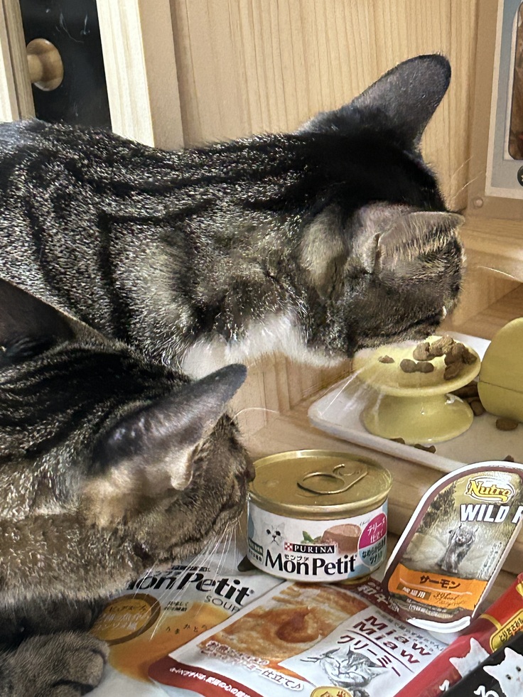パウチなどは咥えて逃げるし、お線香が終わるとカリカリを食べちゃいます。