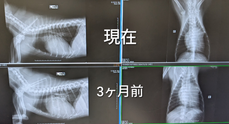 結果でいうと良い所と悪い所がありまして、良くなったのは心臓のサイズが縮んでおりました。4ヶ月検診の頃はこれ以上縮むのはないかなぁという温度感だったのですが、3ヶ月前と比べて結構縮んでおりました✨