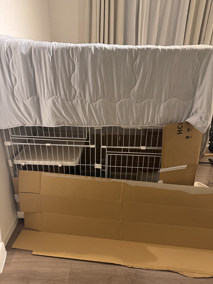 慣れるまで暗いところが良いとのことなので段ボールと毛布で暗くしました。