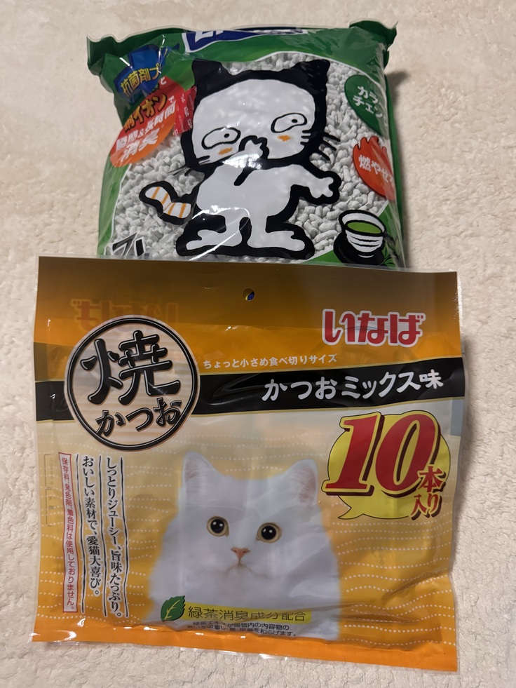 お言葉に甘えて早速トイレの砂、カツオのおやつを購入させていただきました🙇♀️✨