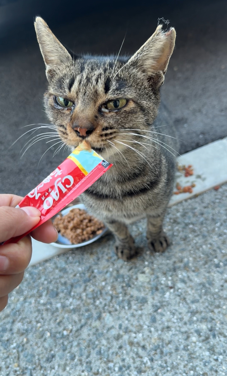 そして、さっちゃんの子ども2匹も捕獲器に同時に入ってくれたことで、去勢手術と避妊手術が無事に完了しました。術後も元気で、リリース後も変わらずご飯を食べにきてくれる姿に安心しています。ですが、最近新たな発見が!2匹だけだったはずのさっちゃんの子どもたちが、なんとある日3匹に増えていました!模様がそっくりなのでおそらく兄弟だと思われます。この新しい子も健康で安全に過ごせるように、捕獲して手術を進めていきたいと思っています。