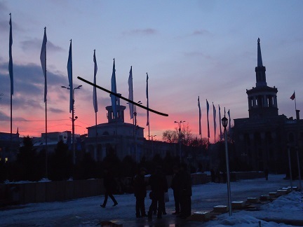 黄昏のビシュケクのフィラルモーニア前