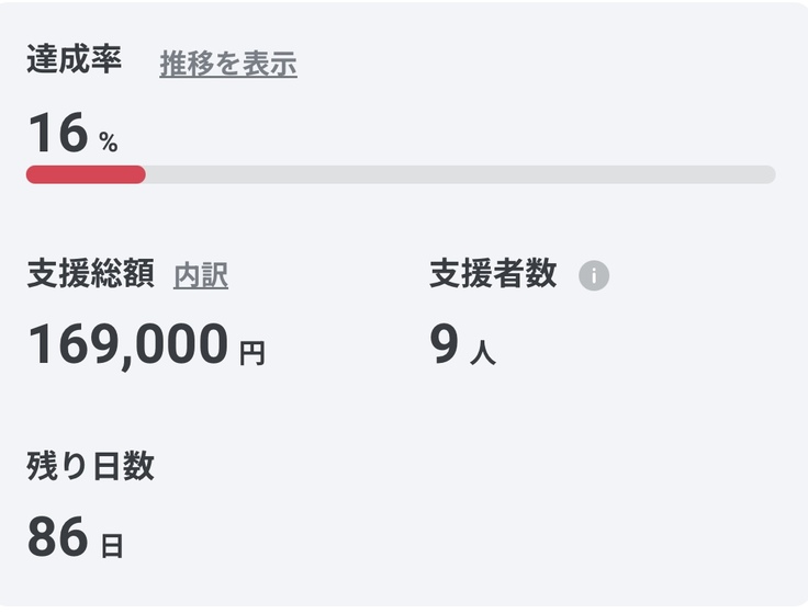 現在3日目で9人の方からご支援をいただいております。