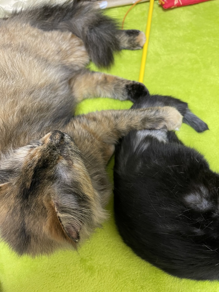 今日もお部屋に来てくれたベアちゃんに甘えております。そしたら、なんと!ベアちゃんがダン君の身体に手を回して寝てました🥹