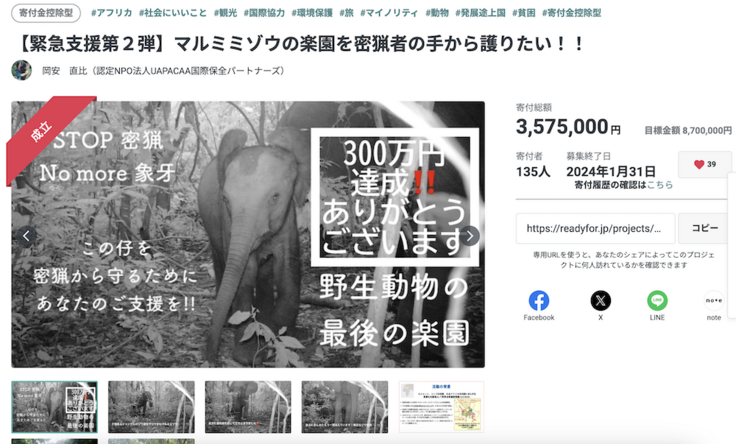 たった今、プロジェクトの募集が完了し、最終的に3,575,000円、目標金額の41%のご寄附をいただきました。前回、2022年末のプロジェクトにも遜色ない金額で、再びラストスパートで皆さまからの押し上げをいただき、本当に感謝してもし切れません。ありがとうございました!!