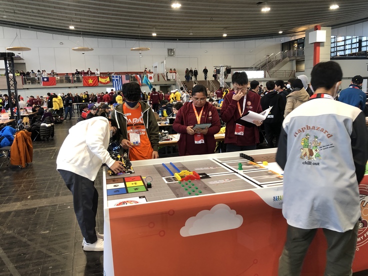 WROの世界大会では子供2〜3人とコーチ1人でチームを作ります。共同でロボットを作り、速く正確に走らせるためにアイディアを出し合います。