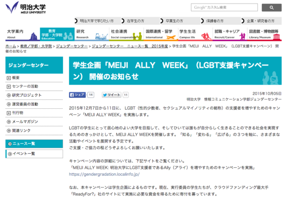 (ジェンダーセンターのWEBサイトに掲載し、明治大学のトップページNEWSにも載せていただいております。)