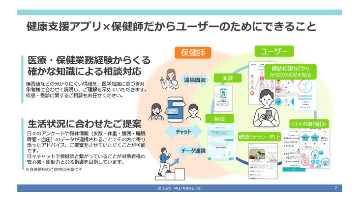 “病気になってから”ではなく、“病気になる前に”関わることの意味と価値を、MIRAMEDの取り組みを通じて社会に広げていきたいと考えています。