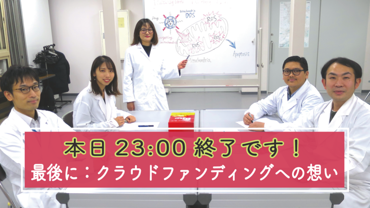 そのためには、明日から『真の挑戦』を始めるために、思い切り助走をつける必要があります。もう余力を残す必要がありません。本日の23時まで力の限り走り続け、明日にしっかりバトンを渡せられるよう、研究資金を募らせて頂きます。皆様の応援とご支援、何卒よろしくお願い申し上げます。