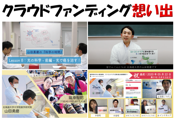 私はこの20年間、「ミトコンドリアを狙った癌治療研究」(Lesson 7: ミトコンドリアを狙う癌治療)を進めてきました。同じ志を持った研究者も加わって、多くの研究成果を得る事ができました。特に、高野先生との出会いは、今回のクラファンの土台となる『ミトコンドリアを狙うPDT』(Lesson 9: 光の科学 -後編- ミトコンドリアを狙うPDT)へと研究を発展させた大切な出来事です。