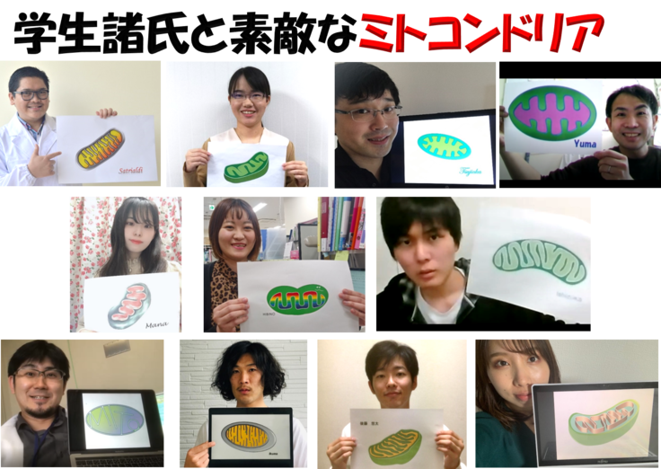 最後は、「ミトコンドリアDDS」という難解なテーマを選び、日々、精力的に研究活動を進める、優秀で忍耐力のある学生諸氏と自身の描いたミトコンドリアとのショットで!