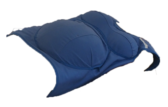 (装着する妊婦体験器具。外側にエプロンを着けます。)
