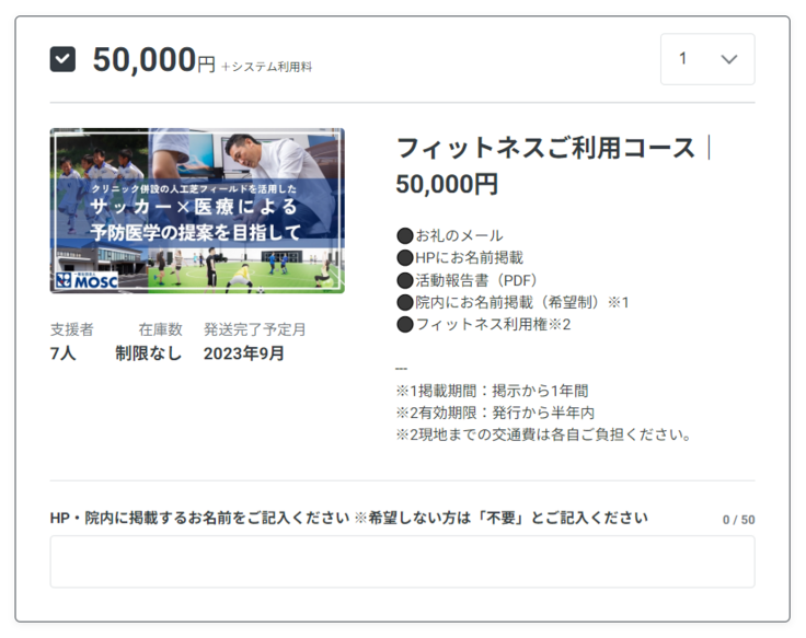 クラウドファンディングによるご縁だけでなく、皆様とフィットネスや人工芝フィールドでお会いできる日を楽しみにしております!