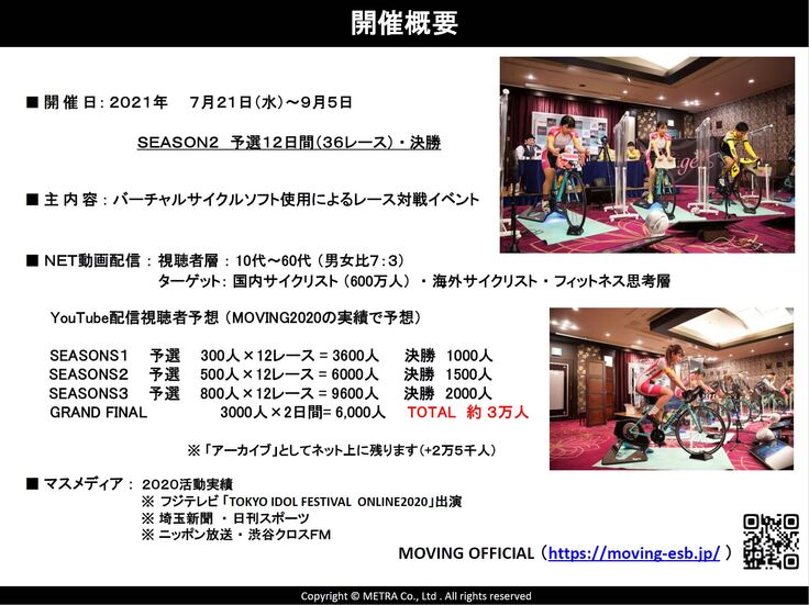 弊社で行うサイクル事業の活動を知ってe-sports BIKEを身近に体験いただくイベントとしてMOVING2021 SEASON2の開催が決定致しました。