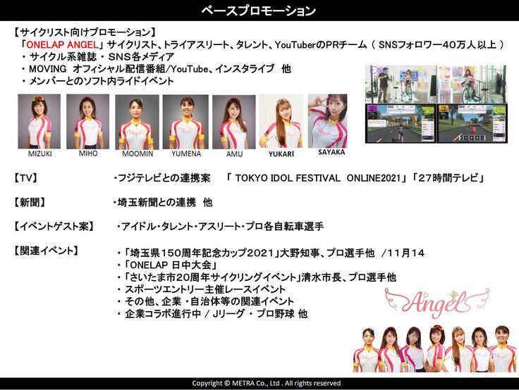 弊社、株式会社METRAが開催するMOVINGのイベントオリジナルグッズをご用意しました。また公式e-sports BIKEプレイヤー「ONELAP ANGEL」のオリジナルパネルなど日々応援してくださっているファンの皆様にも楽しんでいただけるグッズのご用意もございます!