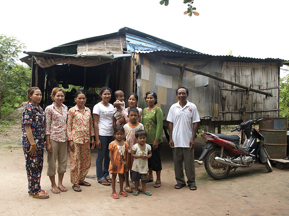 画像は、ソタ・バラさんの家庭を訪問させていただいた時のもの。ソタさんは、お姉さんと妹さんと一緒にメコンブルーで働いています。3人で働いてためたお金で、家を改築するそうです。染色を担当しています。雨季の時は、薪が燃えにくく苦労すること、いろんな色を混ぜ合わせ、自分の納得した色にするのが難しいことなど教えてくれました。学校はお母さんが病気になったため、行けなかったそうです。いつか自分でお店をやりたいと言っていました。