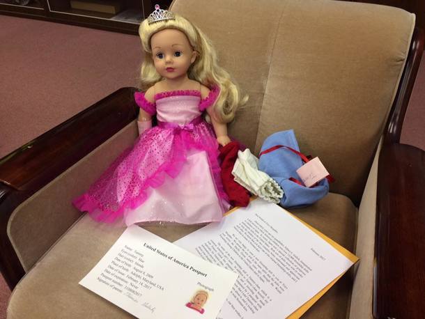 2月末にアメリカ メリーランド州にお住いのギューリック三世ご夫婦がみずから作った衣装とバックを着た「新青い目の人形」が送ってこられました。