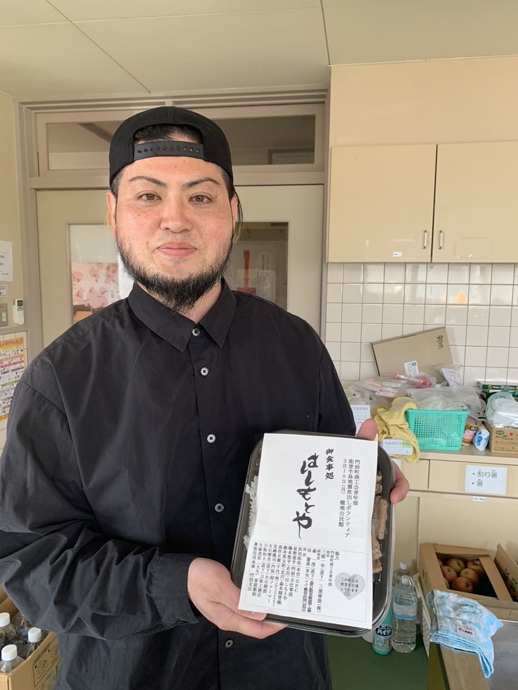 先日、門前町の中心から少し離れた海沿いの町【剣地地区】の避難所に商工会青年部と共に炊き出しに行って来ました。