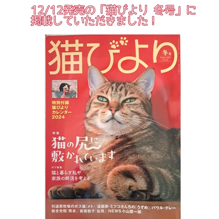 可愛い猫ちゃんたちの写真もたくさんあり、2024年の猫ちゃんカレンダーも付いてますので、是非お手に取って見ていただければと思います!