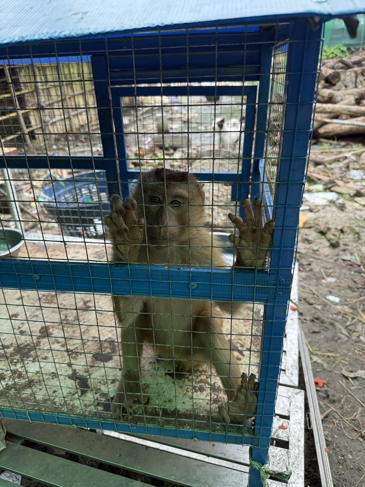 実は、サル・牛・ヤギは施設の外の土地にいて、施設は門のある大きな敷地内にありました。