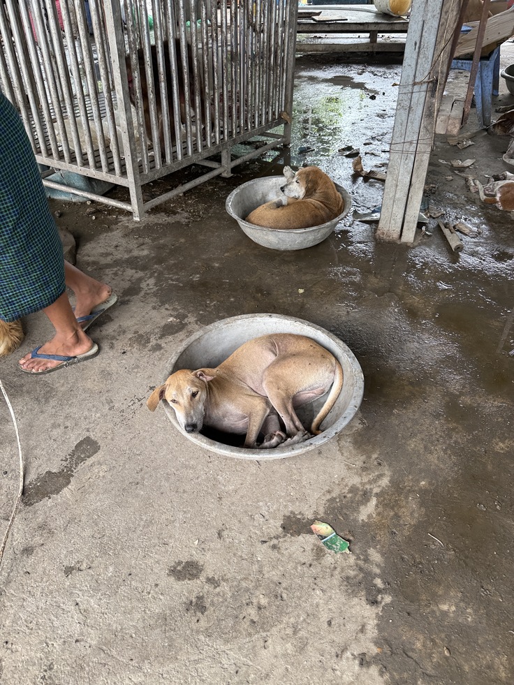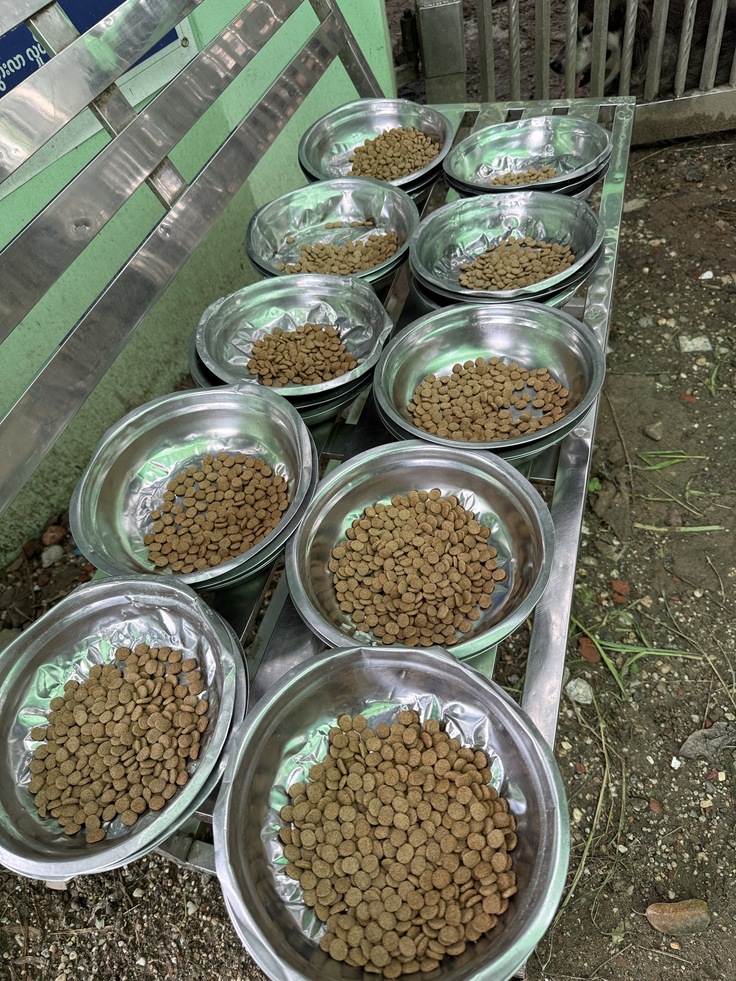 持って行ったフードを撮影用に分けてくれたので、それをあげたのですが、実際は犬の数が多すぎてフードだけをあげることができないそうで、ごはんなどにフードを混ぜてあげているそうです。