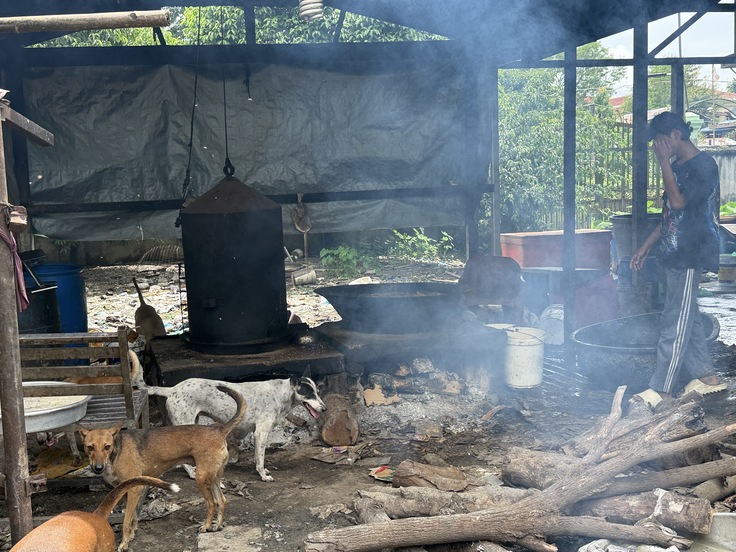 鶏などを煮込んでご飯の用意をしていました。(薪で火を起こして大きな鍋で煮込んでいました)