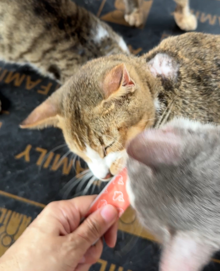 猫ちゃんも虐待されている子が多くてケガだらけの子も多かったですが、オーナーさんと話していたら、「病気の猫のために柔らかくて栄養価の高いものをあげたい」と言われ、ちゃんと大事にされている事を感じてうれしかったです。