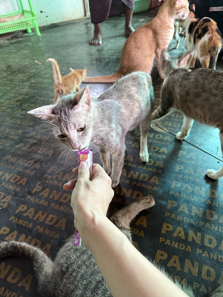 (信じられないと思いますが、ミャンマーは猫もご飯(米)を食べると信じてご飯しかあげない人もいます・わたしの予想では、お外でネズミや鳥を食べていると思いますが・・・)