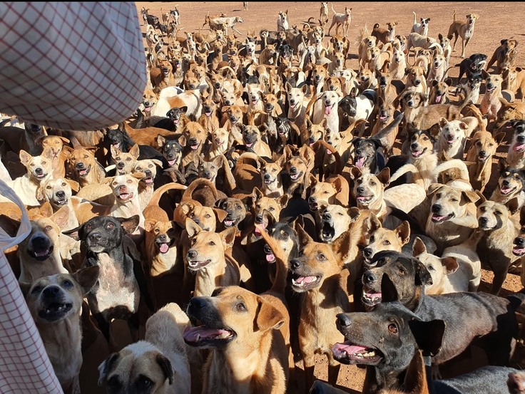 わんこと物資(この施設は乾燥地域にあるので、雨季のミャンマーでも雨が降りません)