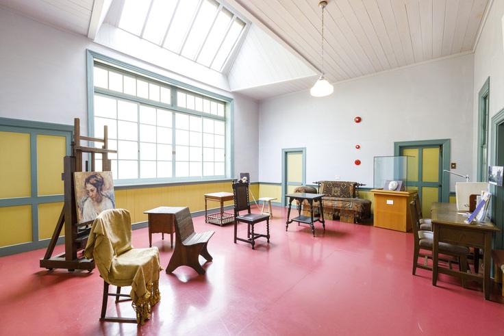 中村彝アトリエは、昭和63(1988)年の茨城県近代美術館開館を機に、県内美術家有志140名からの資金援助により新築復元されました。「昭和版クラウドファンディング」によって建てられた中村彝アトリエは、彝の芸術を後世に残したいという、当時の支援者たちの想いを今に伝えてくれます。