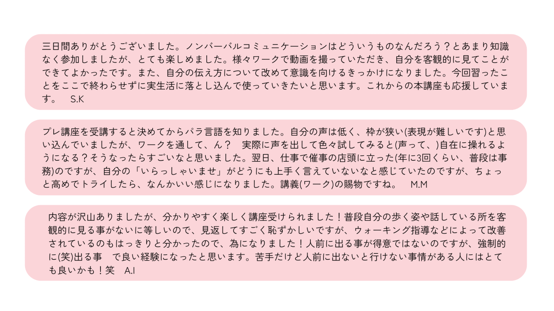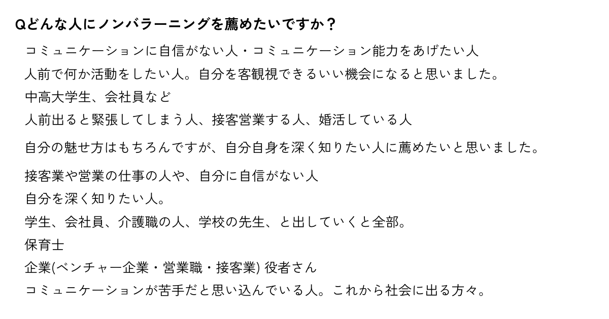 実際に受講してくださった皆様からのアンケートの回答を一部公開させていただきます。