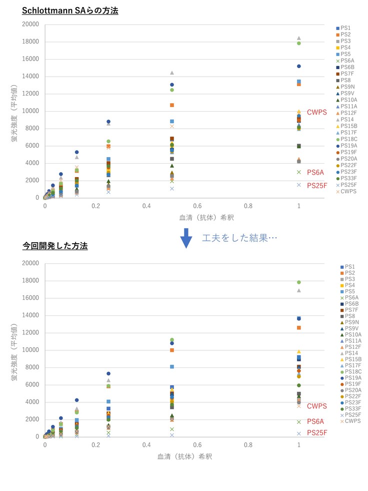 今回開発した方法により、特にCWPSに対する抗体の非特異的結合を抑制できた。