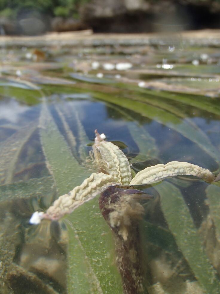 雄花はこれを利用して水を抱えてすいすい移動していましたが、雌花は表面張力を利用してまるでブラックホールのような状態を水面に作りだします。