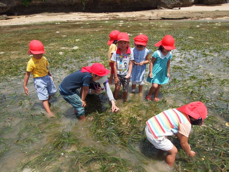 その周辺環境の調査報告書には、サンゴのことはありましたがウミショウブには触れられていなかったのです。地元の人も認識していない、リゾートも重要だとは思っていない… このままだと知らないうちにこの環境が失われてしまうのでは!? と危機感を持った私たち。とりあえず、こんなすごい自然があることを知ってもらわなくちゃと、すぐ近くの野底小学校にウミショウブの観察をしないかと持ち掛けました。それが2008年ごろ。そんな感じで小学生たちとの(幼稚園児もついてきたけど)ウミショウブの観察は始まったのです。(ちなみにリゾートの計画はまだありますが、計画はなかなか進まないようです。その現地担当の方も今ではウミショウブプロジェクトを手伝ってくれていますよ)
