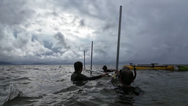 資材を設置場所の海域まで運ぶのに三日かかりました。