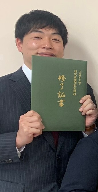 教育課程中は自分のことで精いっぱいになるかとは思いますが、時折周りの人達への感謝の気持ちを思い出しながら頑張ってください。支えてくれる人のことを考えると力が湧いてくると思います。